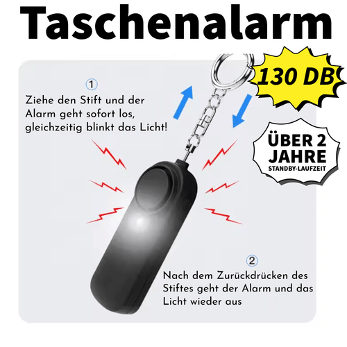 1x Lautstarker Taschenalarm mit Blinklicht: 130DB laut / Über 2 Jahre Standby-Laufzeit / Direkt einsatzbereit