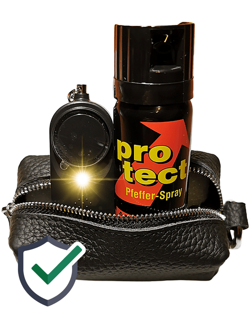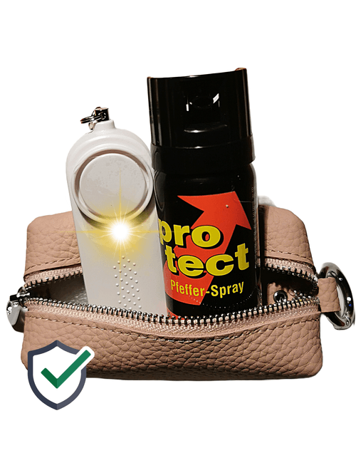 Unsere handlichen Sicherheitslösungen wie das Pfefferspray/Tierabwehrspray und der Taschenalarm sind mehr als nur Werkzeuge - sie sind ihr diskreter Begleiter, der sie schützt, ohne aufzutragen. Versteckt in einer edlen Ledertasche, kombinieren wir Design und Funktionalität, damit Sie sich sicher fühlen, ohne Kompromisse bei Stil und Komfort einzugehen.